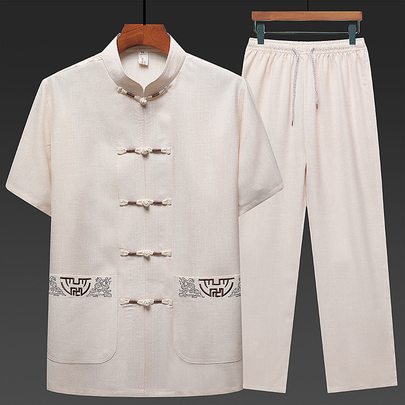 Men's Shirt Shirt Set Summer Shirt Casual Shirt Beach Shirt Button Up Shirt White Navy Blue Green Light Grey Dark Gray Short Sleeve Plain Stand Collar Vacation Hawaiian 2 Piece Clothing Apparel