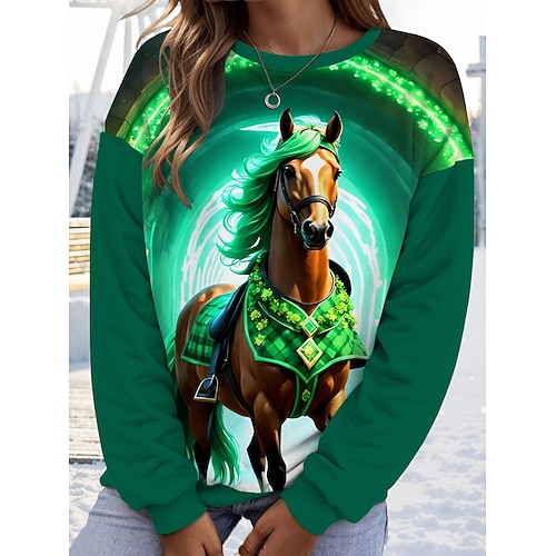 Felpa da donna di San Patrizio Shamrock Street Vestiti da Giorno Stampa Casual Collo a Giro Maniche Lunghe Micro-elastico Primavera e Autunno