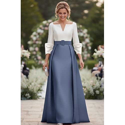 Linea ad A Tubino Colonna Lunghezza al pavimento Abito da invitata a nozze Abito Formale Abito da sera Abito da cerimonia per signora Manica 3/4 Scollo a V Elegante Formale Ospite di nozze