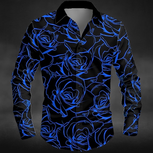 Herren Blumendruck Tag der Toten Rose Hemd Knopfhemd Langarm Dunkler Gothic-Stil Outdoor Ferien Frühling Herbst Umlegekragen 3D-Druck Hemden mit Kragen Schwarz Grün Schwarz / Violett Schwarz-Rot