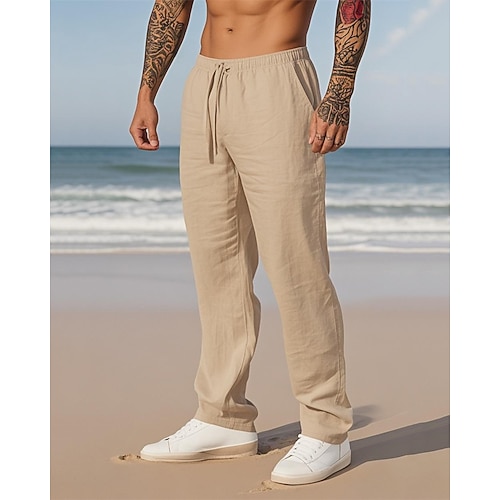Per uomo Pantaloni di lino Pantaloni Pantaloni estivi Pantaloni da spiaggia Tasche A cordoncino Vita elastica Liscio Comfort Traspirante Giornaliero Per eventi Da mare Hawaiano Boho Nero Bianco