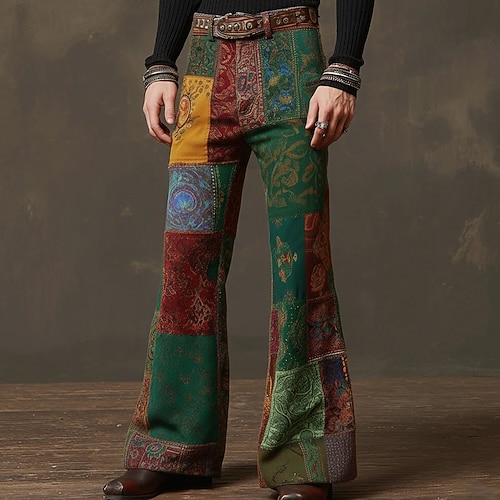 Per uomo Geometrico Blocco di colori Patchwork Pantaloni Pantaloni da discoteca Pantaloni a zampa d'elefante anni '60 e '70 Misura del girovita medio Stile Boho Vintage Retrò All'aperto Feste Casuale