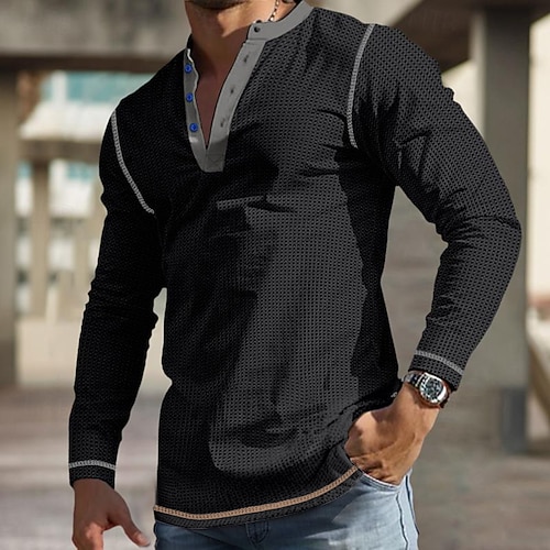 Per uomo maglietta Camicia Henley T-shirt in maglia waffle T-shirt Maglia a maniche lunghe Color Block Henley Strada Da mare Manica lunga Collage Abbigliamento Poliestere Di tendenza Originale