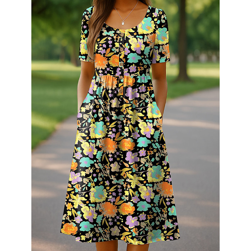 Women's Midi Dress Knit Dress Casual Dress Sundress A Line Dress Vacation Casual Beach Holiday Regular Fit Floral Graphic Short Sleeve Crew Neck Black Red Orange Beige Summer Spring