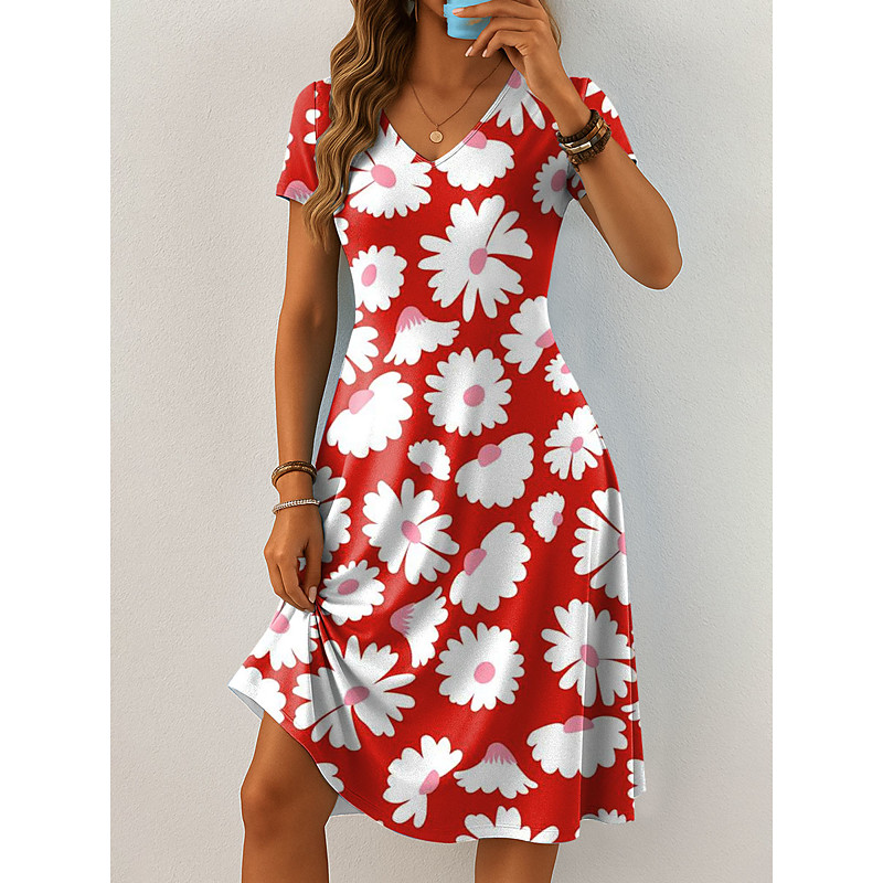 Women's Midi Dress Casual Dress T Shirt Dress Tee Dress Sundress A Line Dress Vacation Casual Boho Beach Regular Fit Floral Graphic Short Sleeve V Neck Black Pink Red Blue Summer Spring