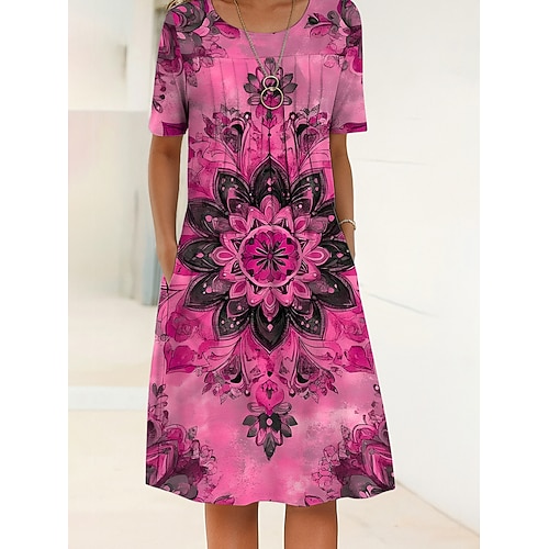 Mini Abito da Donna Abito Casual Abito Petite Abito T Shirt Abito Tee Abito da Sole Vacanza Casual Quotidiana Fit Regolare Floreale Manica Corta Collo Giro Nero Rosso Blu Navy Verde Estate