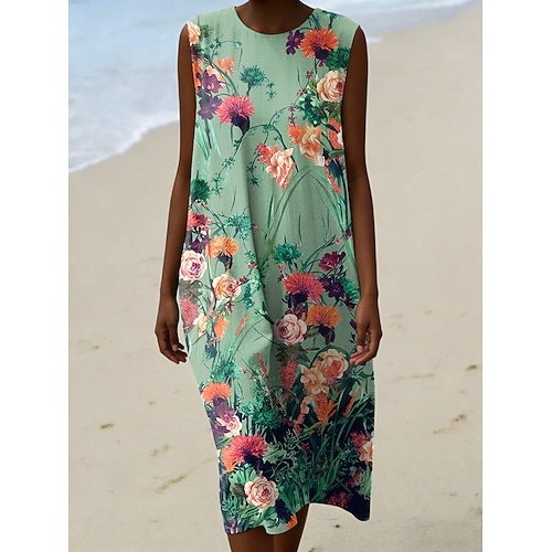 Per donna Abito Midi Abito a Tubino Vacanza Casual Uscire Vestibilità regolare Floreale Grafico Senza Maniche Girocollo Blu Giallo Viola Verde Estate Primavera