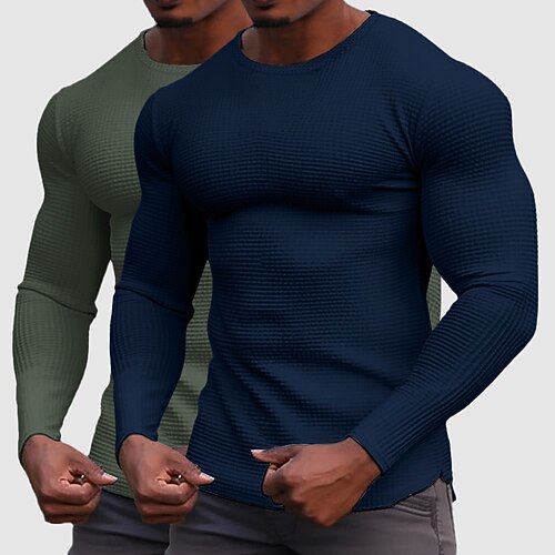 Herren Waffelhemd T Shirt T-Shirt Langarmshirt Langarm Rundhalsausschnitt Frühling Herbst Ganzjahres Einfach Mode Designer Basic 2 teilig Mehrfachpackung Gestrickt Urlaub Straße Lässig