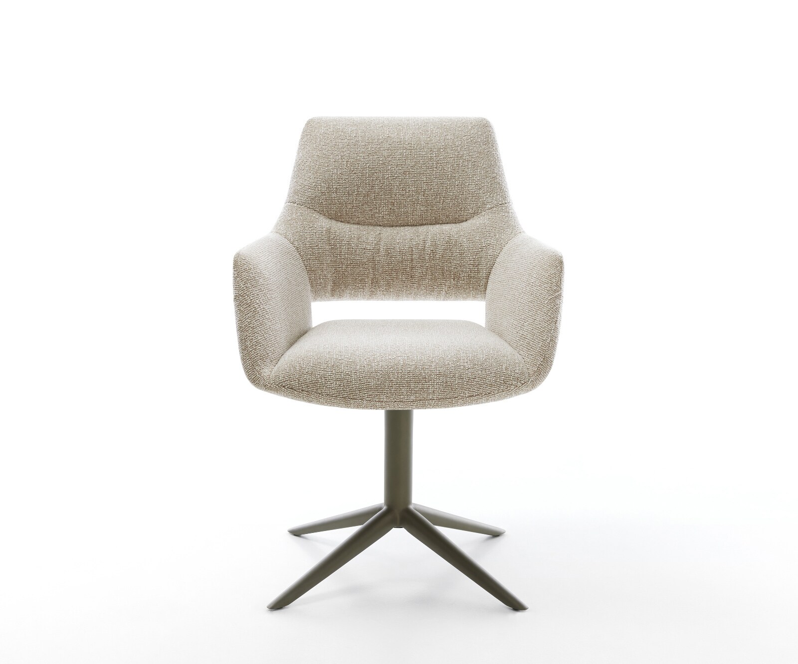DELIFE Draaistoel Yago-Flex met armleuning geweven stof beige kruispoot afwerking met titanium 360° draaibaar rocker-functie pocketveer kern