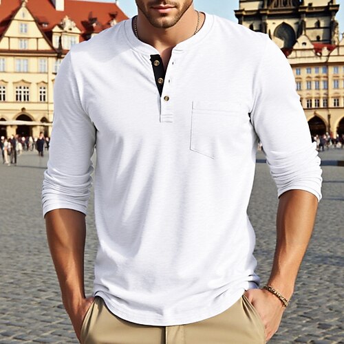 Per uomo Maglietta Maglia Henley Camicia a Maniche Lunghe Manica Lunga Henley Primavera Autunno Semplice Moda Designer Essenziale Tasche Vacanza Streetwear Uscire Nero Bianco Blu marino Maglietta Top