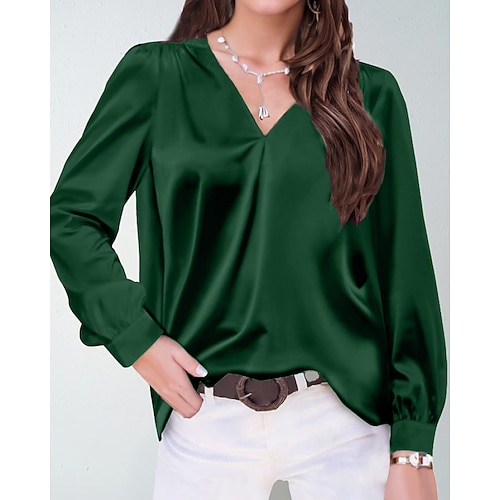 Per donna Camicia Elegant Elegante Raso/Satin Semplice Moderno Casual Manica Lunga Scollo a V Top Regolari Quotidiano Ferie Uscire Arricciato Nero Bianco Giallo Rosa Vino Autunno