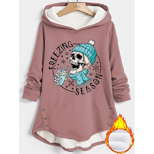 Per donna Felpa con cappuccio Grafico Teschio Lettera Caldo Casual Manica Lunga Con Cappuccio Top lunghi Streetwear Abbigliamento Quotidiano Casuale Bottoni Stampato Nero Rosa Blu Grigio Autunno