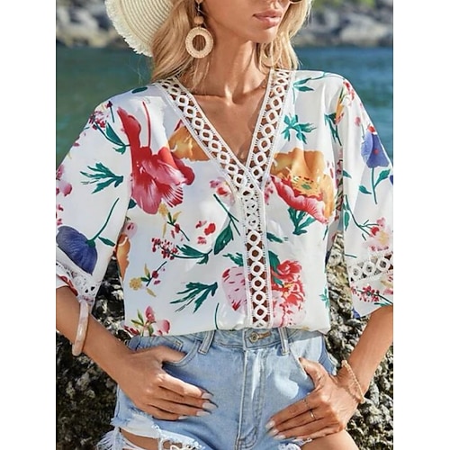 Per donna Blusa Floreale Vintage Elegante Casual Manica 3/4 Scollo a V Top Regolari Quotidiano Stampato Blu Nero Rosa Rosso Marrone Estate Primavera Autunno