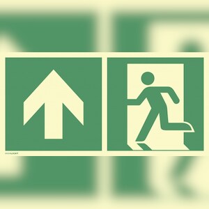 Notausgang links Pfeil oben, Kombi, ISO 7010, Alu, nachl., 160-mcd, 297x148 mm