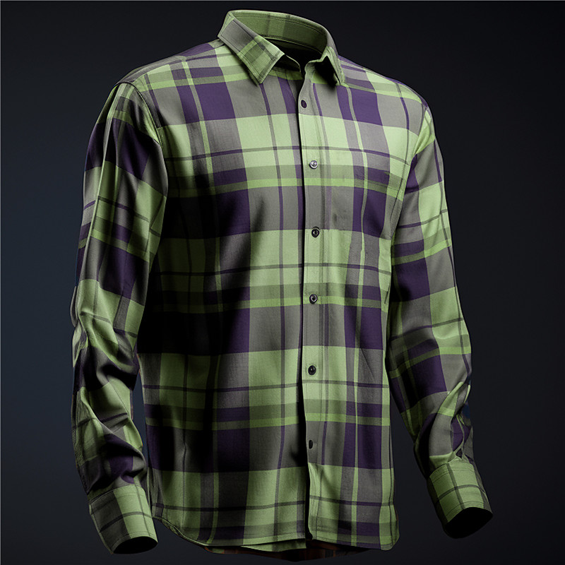 Men's Casual Shirt Flannel Shirt Plaid Shirt Button Up Shirt Red Blue Long Sleeve Plaid / Check Lapel Vacation Casual Daily Button-Down Clothing Apparel Polyester Fashion Casual Comfortable