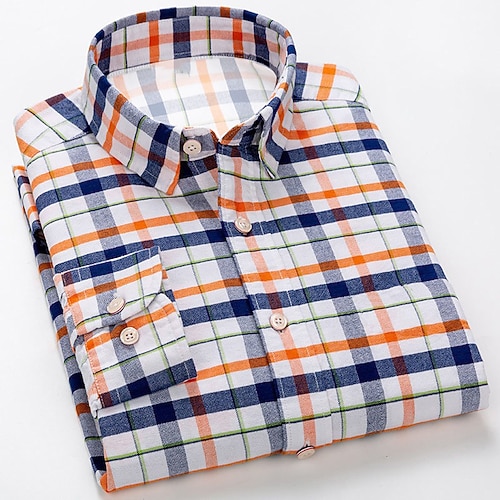 Men's Plaid / Check Geometric Pattern Shirt Button Up Shirt Long Sleeve Business Business Casual Daily Wear Going out Spring Turndown Print Button-Down Blue Orange Green Khaki