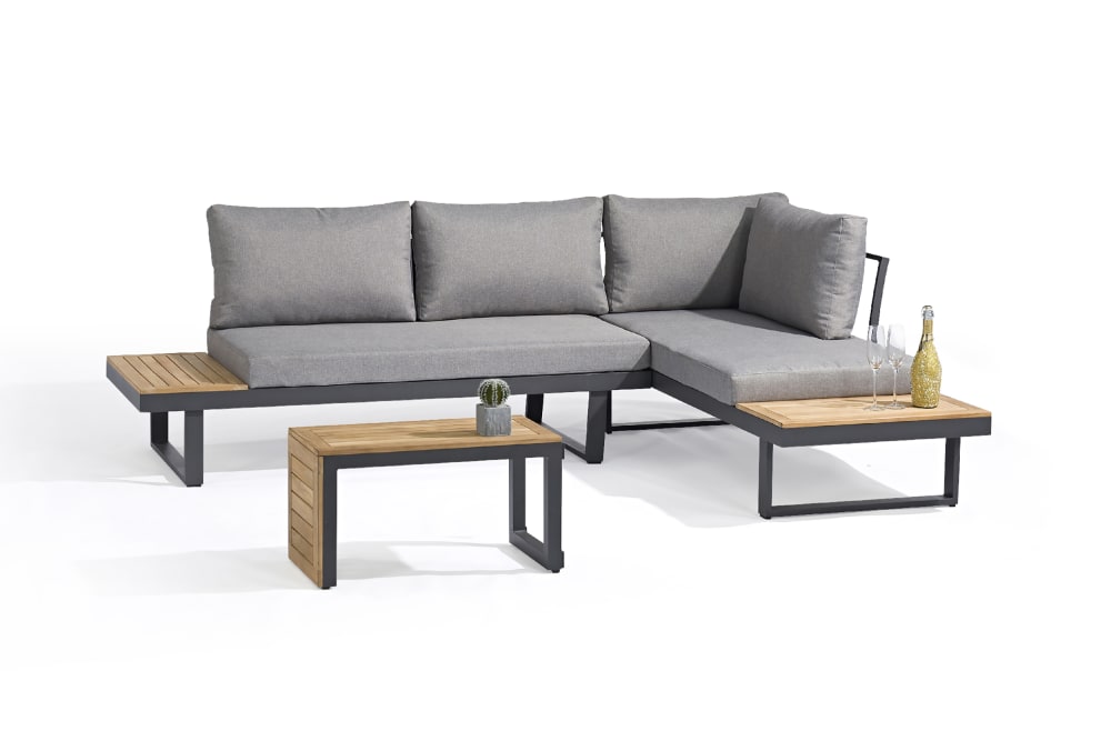 Salotto da giardino 4 posti in legno di acacia e alluminio