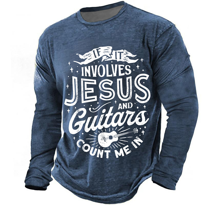 If It Involves Jesus And Guitars Count Me In Men Long Sleeve Shirt Funny Christian Guitar Player Music Lover Religious Faith Top Clothing Apparel S M L XL XXL XXXL