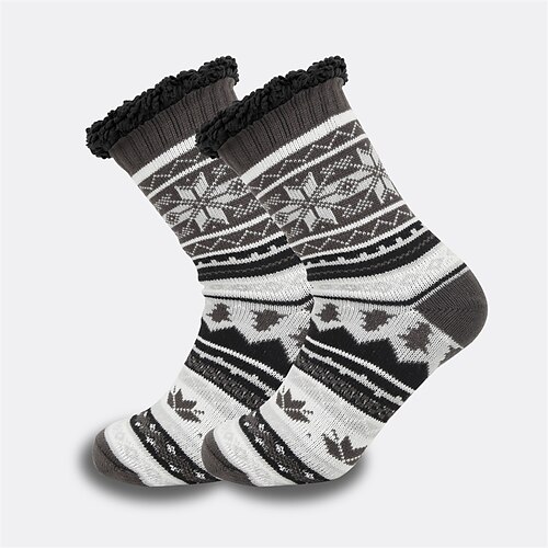 Per uomo 1 Paio Calzini Calzini foderati in sherpa Calzini Casual Calzini invernali Nero Bianco Colore Geometrico Mimetico Vacanza Quotidiano Base Spesso Inverno Moda Etnico