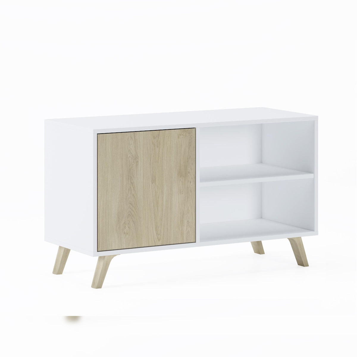Lowboard LEONIQUE "Eadwine", eichefarb., B:175cm H:55cm T:38cm, MDF, Sideboards, Lowboard, TV-Kommode, Push-to-open, Türen mit Fischgräten Muster, Breite 175 cm