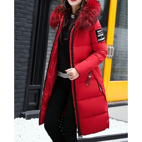Per donna Cappotto Invernale Giacca Piumino Giacca con Cappuccio Caldo Confortevole Cerniera Tasca Casual Tinta unica Vacanza Casuale Abbigliamento quotidiano Uscire Lungo Con Cappuccio Vestibilit