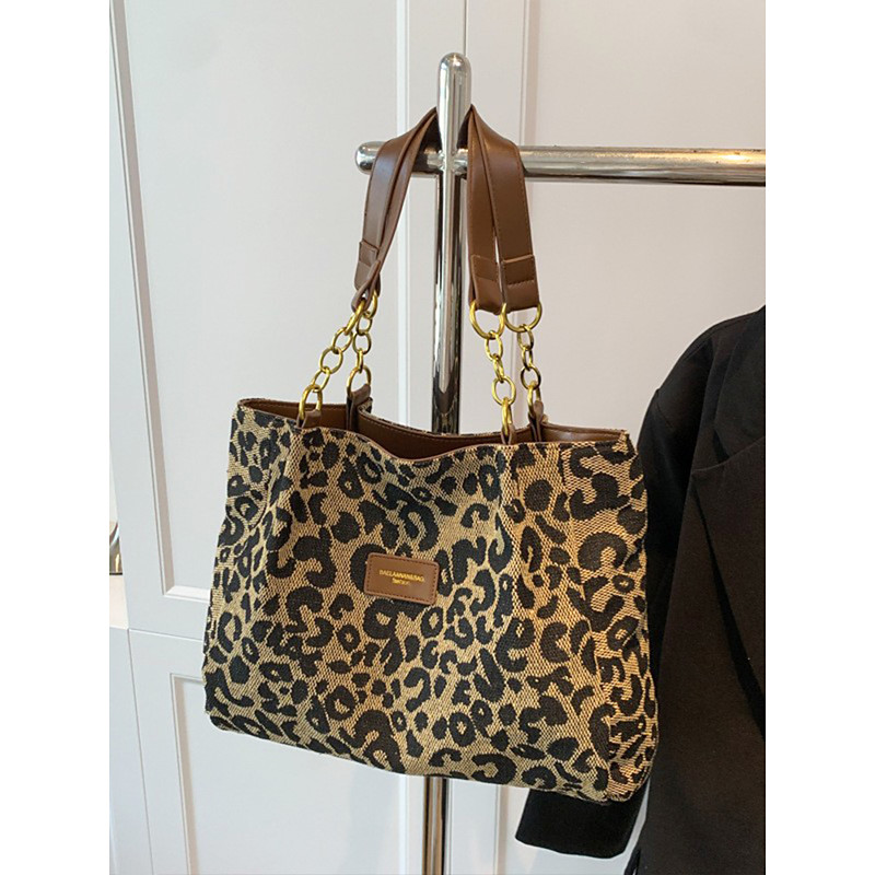 Women's Leopard Print Canvas Tote Bag – Large Capacity, Stylish Shoulder Bag for Everyday Use, Ideal for Work and Casual Outings