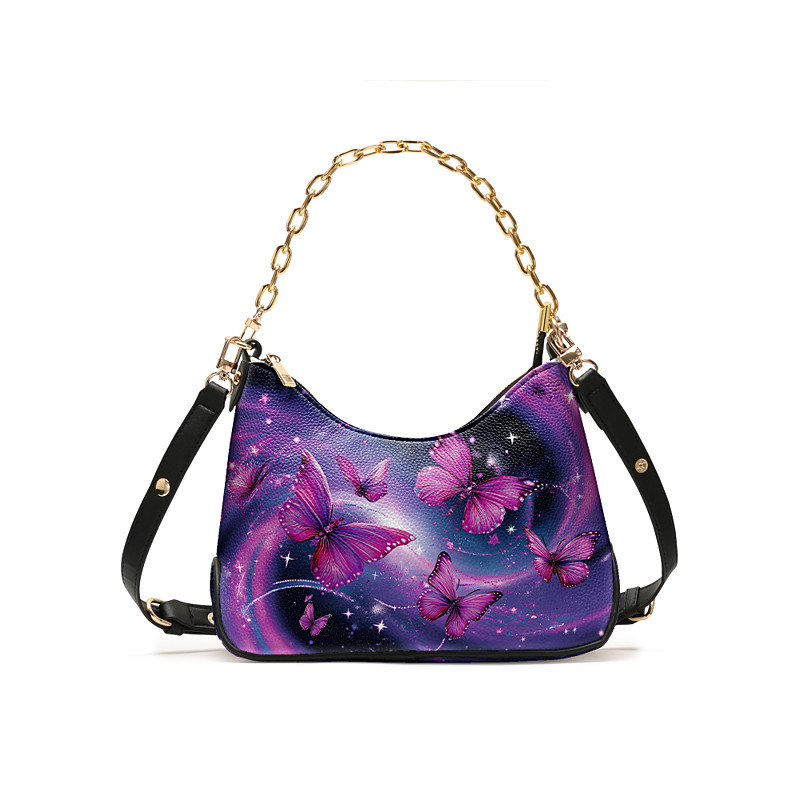 Women's Faux Leather Shoulder Bag with Adjustable Strap, Butterfly Pattern, Multi-Color Options, Versatile Carrying Styles for Casual and Formal Occasions