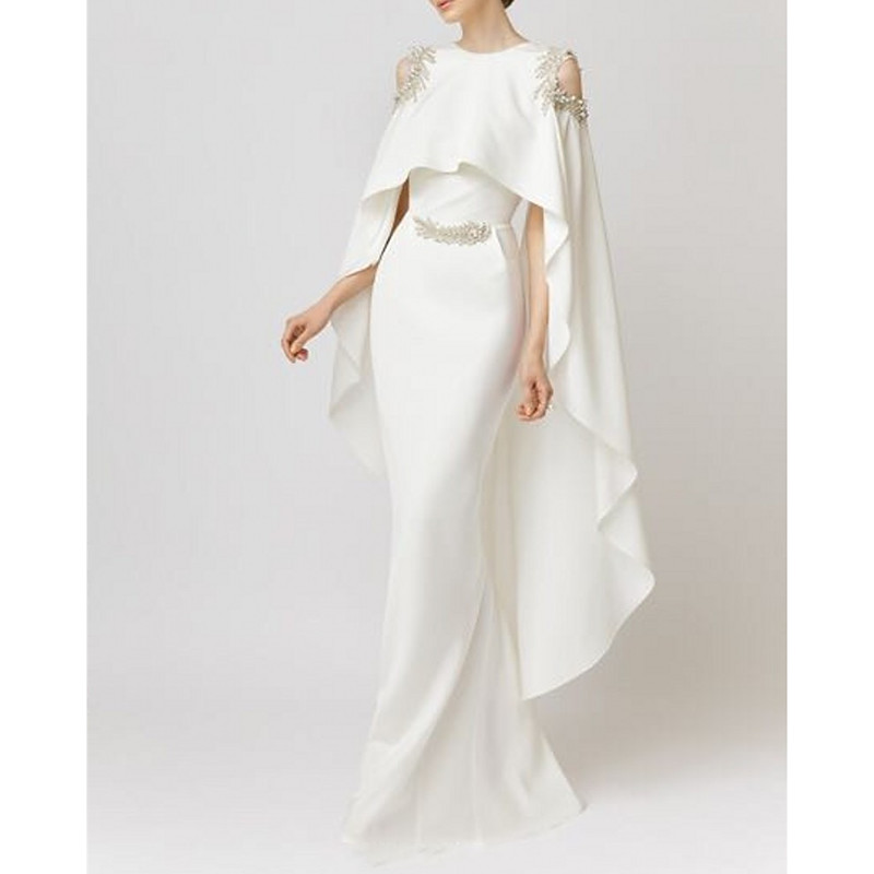 Mermaid Trumpet Floor Length Ball Gown with Cape Evening Gown Formal Dress Elegant Silky Short Sleeve Boat Neck Wedding Formal Capes Satin with Shawl