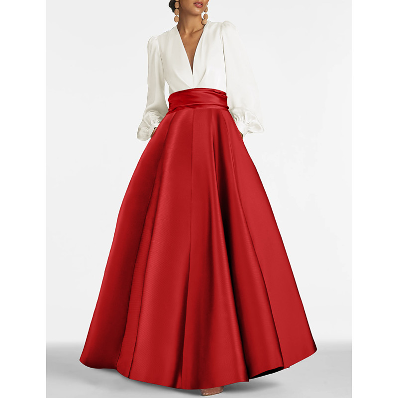 Sheath Column Floor Length Evening Gown Ball Gown with Overskirt Formal Dress Elegant Color Block Silky 3/4 Length Sleeve V Neck Christmas Formal Belt / Sash Satin with Slit