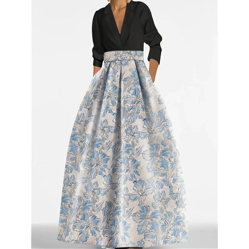 A-Line Floor Length Evening Gown Ball Gown Formal Dress High Split Mother Of The Bride Sleeveless V Neck Formal Wedding Guest Pocket Satin with Floral Print Slit Pocket