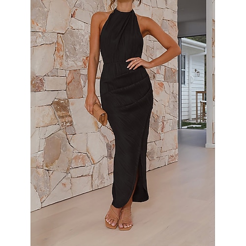 Per donna Abito Midi Vestito da Festa Abito da Cocktail Tubino Elegante Moda Moderno Festa serale Feste Occasione speciale Vestibilità regolare Semplice Senza Maniche All'americana Nero Verde Estate