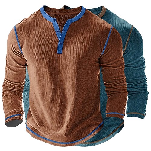 Per uomo Maglietta Maglia Henley Maglietta a Maglia Waffle Camicia a Maniche Lunghe Manica Lunga Blocco di colori Tinta unita Moda Designer Essenziale 2 Pezzi Confezione multipla Henley Vacanza