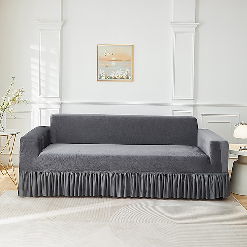 Copridivano elastico in tessuto jacquard con orlo a gonna, copridivano componibile a forma di L, copridivano angolare per soggiorno 1, 2, 3 e 4 posti