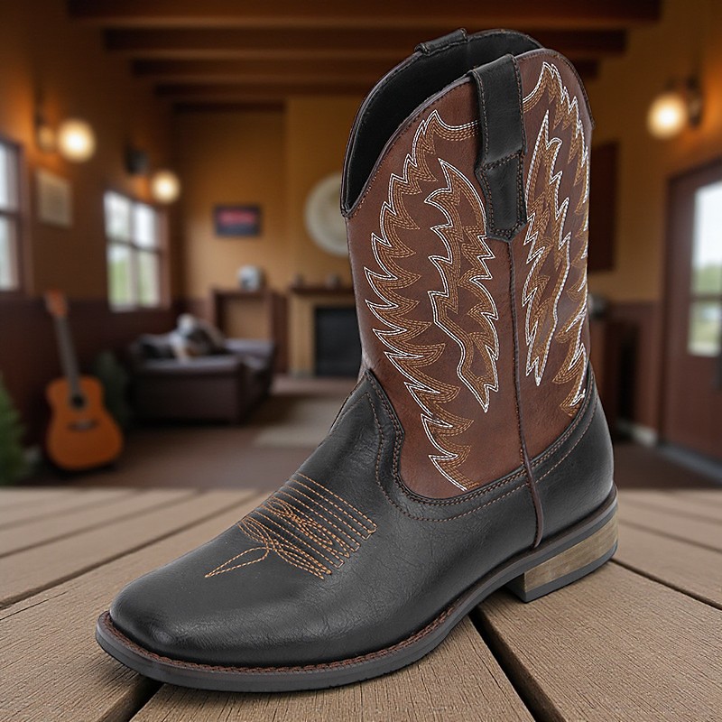 Men's Western Cowboy Boots Square Toe Slip-On Mid-Calf Work Riding Boots Casual Country Style Footwear for Daily Wear