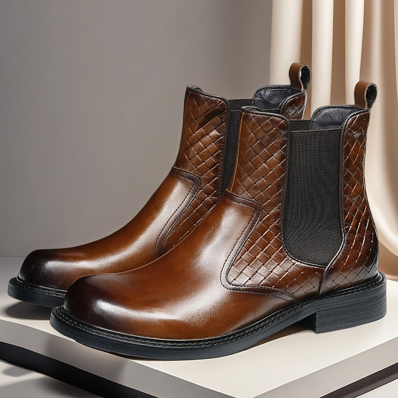 Men's Brown Woven Chelsea Boots Classic Slip-On Ankle Boots with Elastic Side Panel for Office, Parties and Smart Casual Outfits