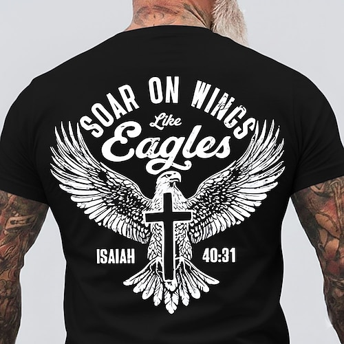 Maglietta Motivazionale della Bibbia Uomo Volare sulle Ali come Isaia 40:31 Aquila Croce Cristiano Religioso Fede Grafica Collo a Giro Regolare Fit Casual Designer Abbigliamento