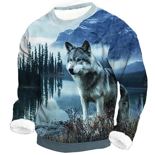 Herren Wolf 3D-Druck Fleece Pullover Täglich Lässig Fantasie Rundhalsausschnitt Heim Party Geschenk Streetwear Blau 1 Blau 3# Blau 2# 3D-Druck Herbst Winter Designer S M L XL XXL XXXL