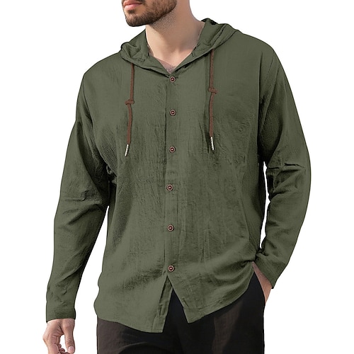 Per uomo Camicia Camicia di lino Camicia Estiva Camicia da Spiaggia Semplice Vacanza Casuale Nero Bianco Blu marino Cachi Manica Lunga Con Cappuccio Primavera Autunno Abbigliamento Coulisse