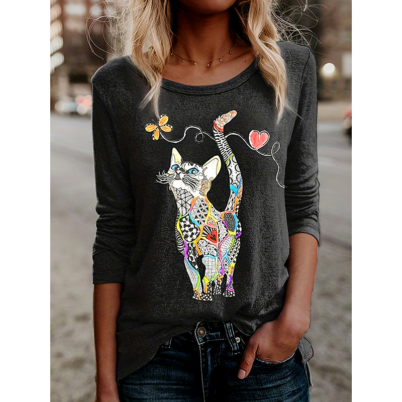 Women's T shirt Long Sleeve Floral Graphic Cat Vintage Stylish Classic Long Sleeve Crew Neck Regular Tops Daily Print Black Blue Green Spring Fall Prefall