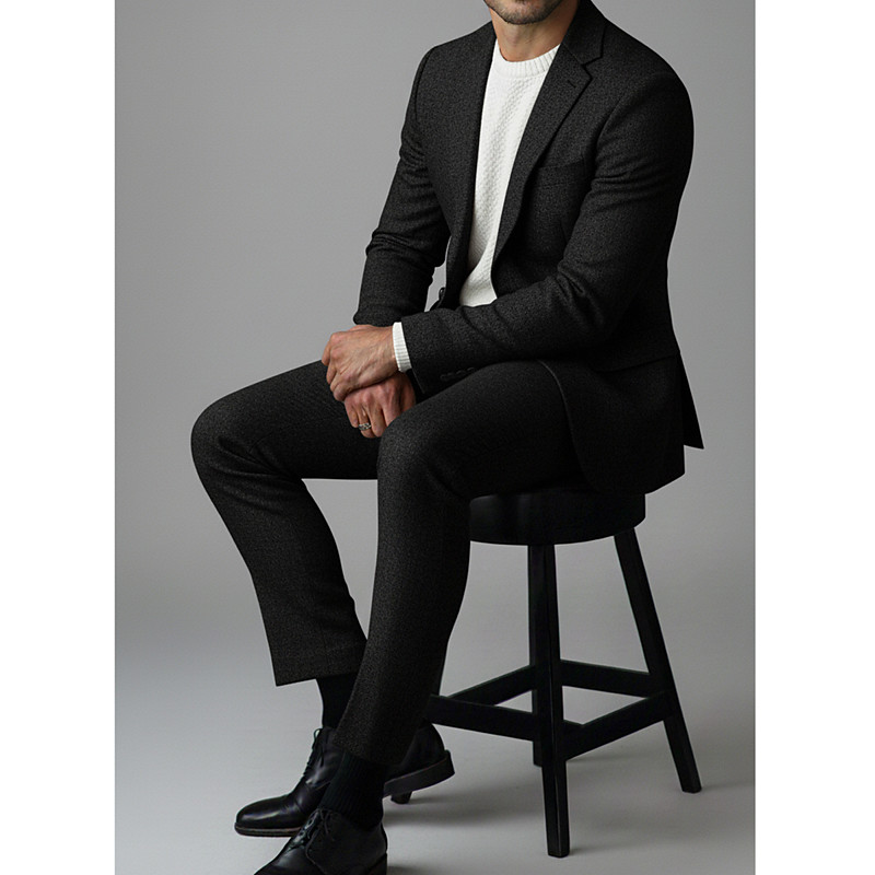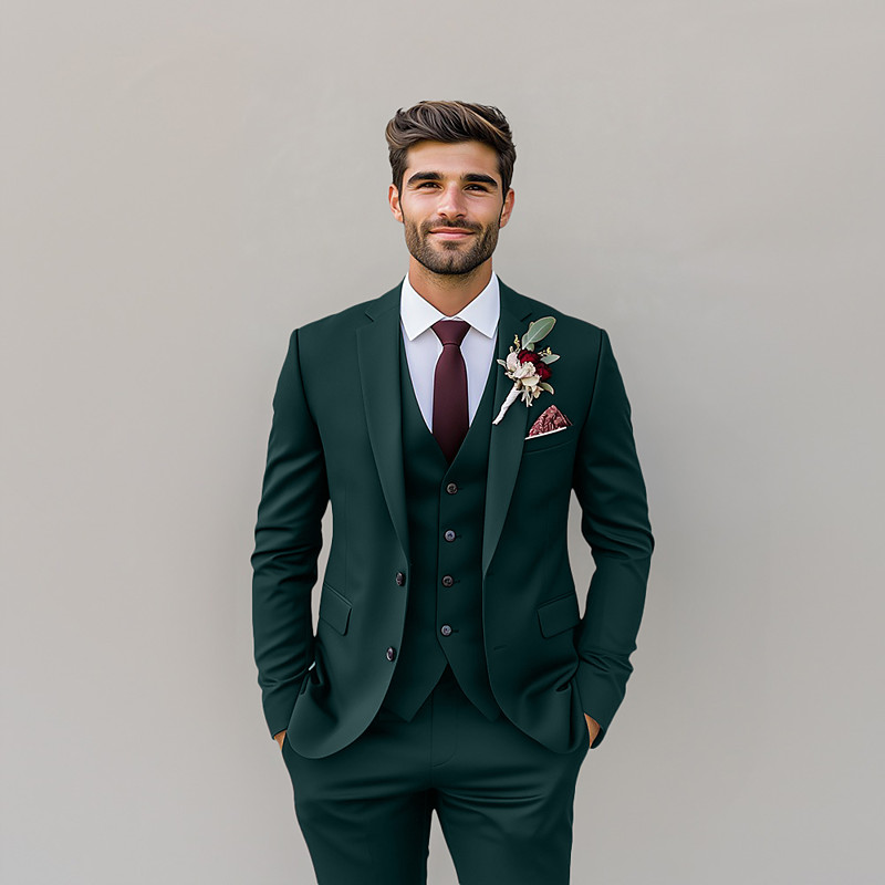 Men's Wedding Suits Notch Black Blue Solid Colored Slim Fit 3 Piece Single Breasted Two-buttons