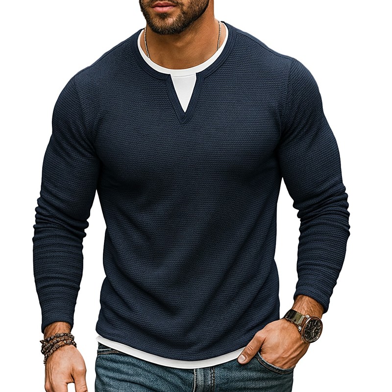 Men's T Shirt Color Block Tee Long Sleeve Crew Neck Spring Fall Winter Plain Elegant Warm Vacation Fake two piece Training Home Sports Outdoor Light Blue Black White Top Tee for Men