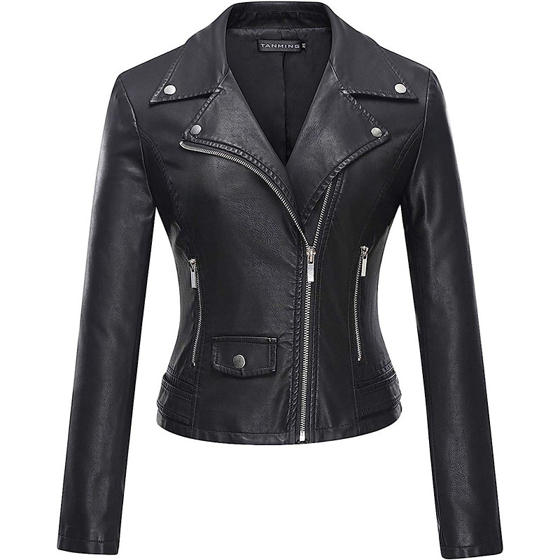 Women's Faux Leather Jacket Biker Jacket Comfortable Pocket Full Zip Fashion Street Style Plain Outdoor Casual Daily Regular Stand Collar Regular Fit Long Sleeve Outerwear Red Green Beige Fall Winter