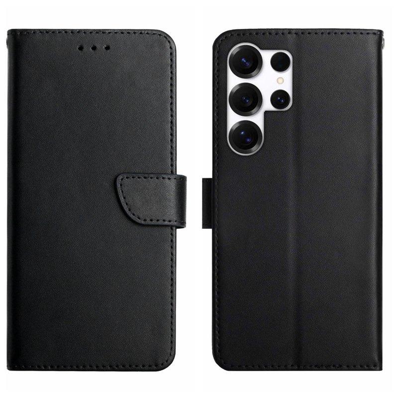 Samsung Galaxy S26 Ultra Plånboksfodral Äkta Läder Nappa Textur - Svart