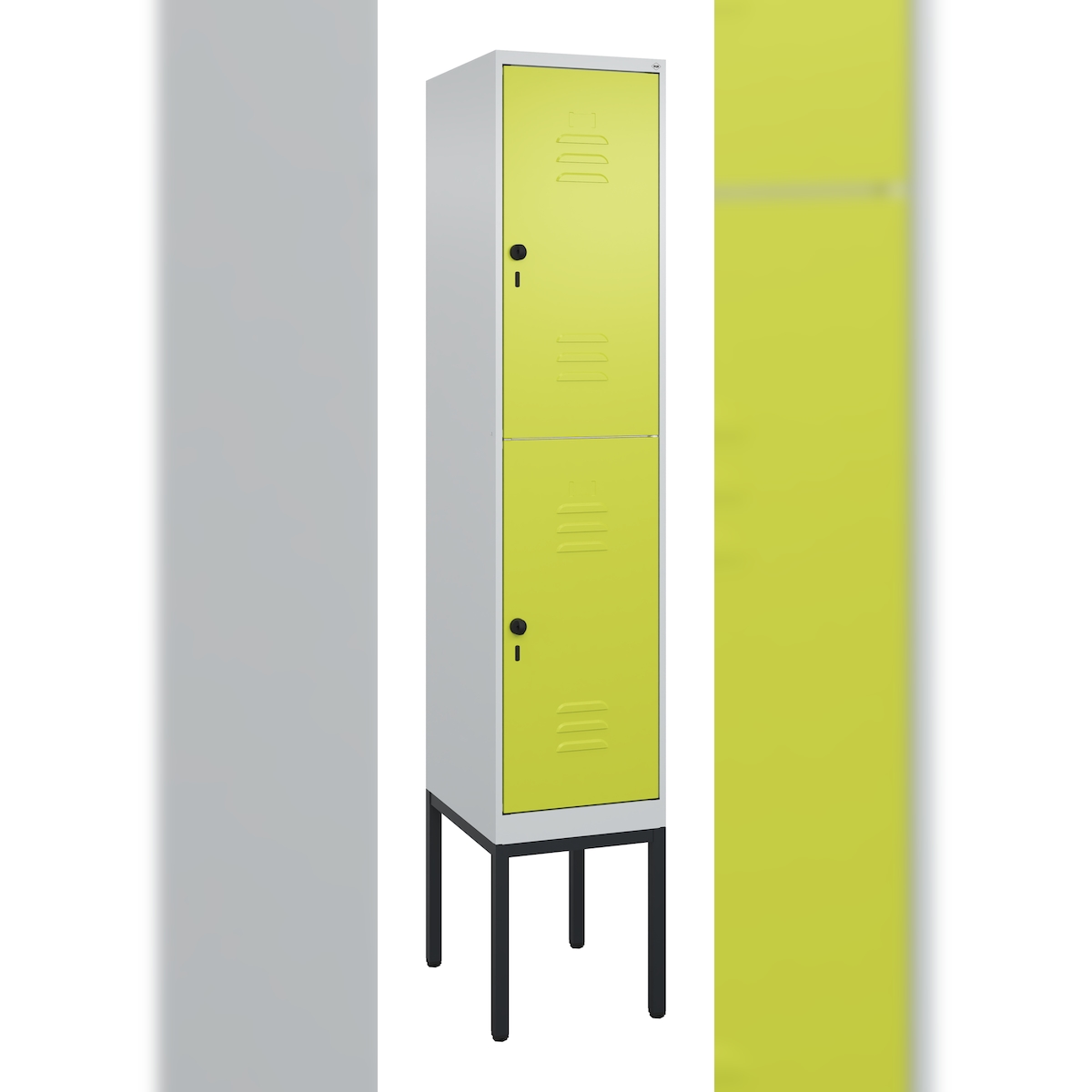 C+P Spind Classic PLUS, Gestell, 2 Abteile, HxBxT 212x40x50cm, Sicherheitsdrehriegel, Hellgrau/Clowngrün von PROREGAL