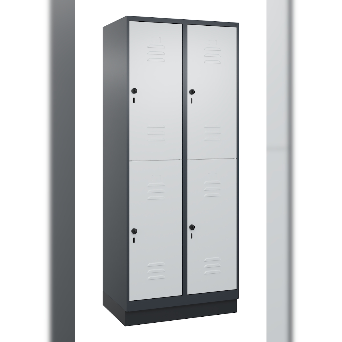 C+P Spind Classic PLUS, Sockel, 4 Abteile, HxBxT 195x80x50cm, Sicherheitsdrehriegel, Anthrazit/Hellgrau von PROREGAL