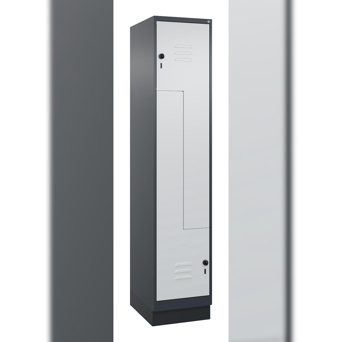 C+P Z-Spind Classic PLUS, Sockel, 2 Abteile, HxBxT 195x40x50cm, Sicherheitsdrehriegel, Anthrazit/Hellgrau von PROREGAL