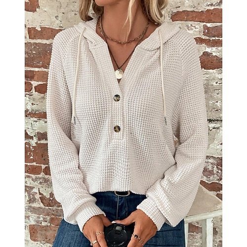 Per donna Felpa Casual Tinta unica A Coste Con Cappuccio Bottoni Lavorato a maglia Manica Lunga Top Regolari Maglia Quotidiano Uscire Weekend Nero Bianco Autunno