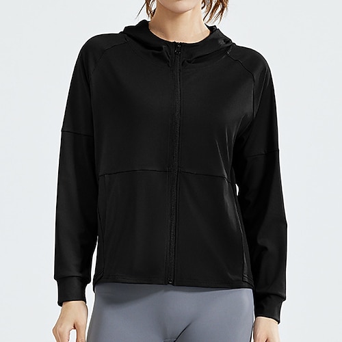 Per donna Giacca con Cappuccio Giacca da allenamento Leggero Manica Lunga Gli sport Tinta unica Top Per Palestra Atletico Corsa Vestibilità comoda Abbigliamento sportivo