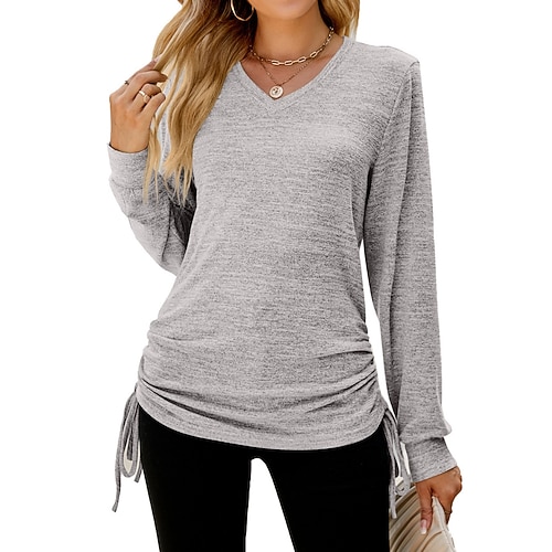 Per donna Blusa Tinta unica Elegante Casual Manica Lunga Scollo a Barca Top Regolari Quotidiano Arricciato Nero Verde militare Albicocca Grigio Primavera Autunno Inverno