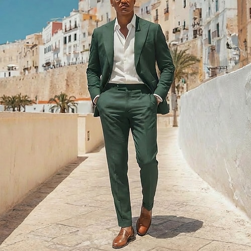Uomo Abiti da lavoro Casuale Matrimonio Nero Verde scuro Primavera, Autunno, Inverno, Estate Tuta Bavero classico Quotidiano Affari Tinta unita Vestibilità su misura 3 pezzi Monopetto a un bottone